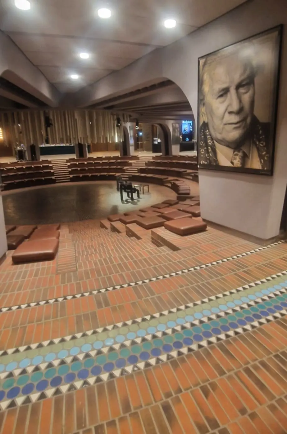 Der Rundgang endete im „Grünen Gewölbe“, das früher das Foyer der Rheinhalle war und das in seiner Form über die Jahre nicht verändert wurde. Es wird jetzt genutzt zur Bewirtung der Tonhallenbesucher und für spezielle Feierlichkeiten.